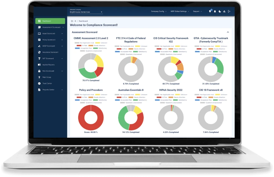 Compliance Scorecard v10 was built with internal AI governance controls from the start and supports a Bring Your Own Key (BYOK) model. MSPs can integrate AI providers such as OpenAI, Microsoft Azure, Anthropic, or Google without locking into a single model or surrendering control over data. AI is optional, not required, allowing providers to adopt AI-assisted workflows at their own pace while maintaining full platform functionality.