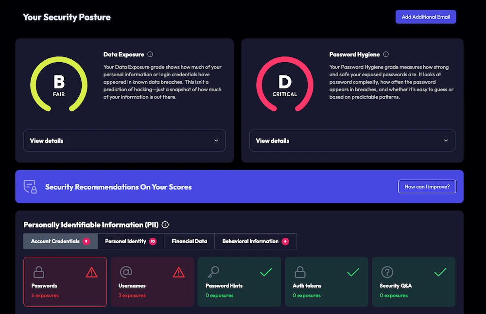 By giving individuals accessible visibility into identity risks and the tools to address them, organizations can reduce their attack surface, strengthen their security culture, and better manage risks arising from employee exposures.