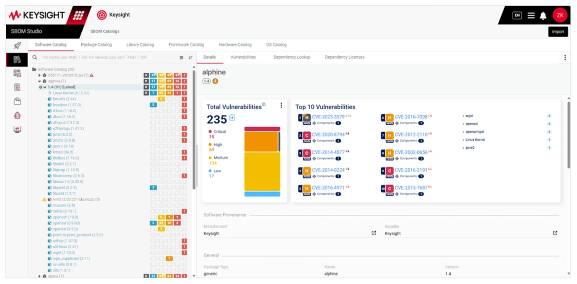 Keysight SBOM Manager is designed to support this shift by addressing the practical challenges organizations face as SBOM requirements expand. The solution enables broader and more accurate visibility into digital products by analyzing binary software, firmware, containers, and other packaged components, including closed-source and deeply embedded dependencies. It continuously correlates SBOMs with multiple authoritative vulnerability sources, intelligently filters out vulnerabilities that are not applicable, and supports the use of Vulnerability Exploitability eXchange (VEX). This enables teams to focus on meaningful risk rather than being overwhelmed by raw vulnerability data.
