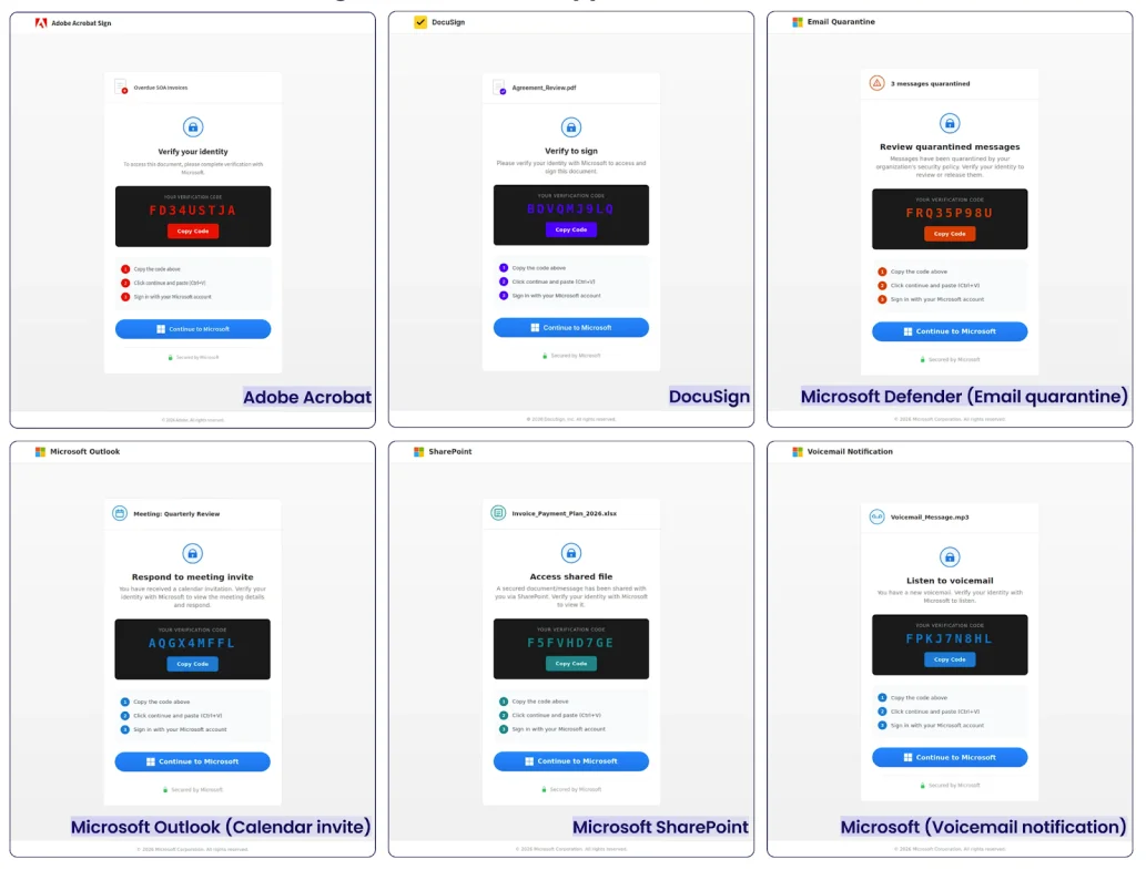 EvilTokens’ phishing templates (Source: Sekoia)